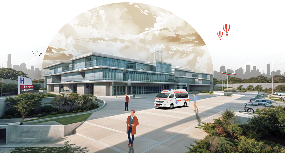 این بیمارستان با هدف پاسخدهی به بیماریهای تخصصی خلبانها نظیر قلب و عروق، چشم، سوختگی و سایر موارد مرتبط طراحی شده است. علاوه بر این، خدمات این مرکز درمانی به خانوادههای نیروی هوا و فضا و سایر بیماران عمومی نیز ارائه خواهد شد. پروژه ساخت این بیمارستان به صورت مسابقهای بین شرکتهای تخصصی بیمارستانی برگزار شد و به لطف خالق هستی و تلاشهای بیوقفه تیم طراحی شرکت اسکان، موفق به کسب رتبه نخست این رقابت شد. ایده اصلی طراحی این پروژه برگرفته از یکی از عناصر کلیدی معماری تاریخی ایران، یعنی استفاده بهینه از نور طبیعی در ساختمانها است. یکی از راهکارهای ارزشمند در این زمینه، بهرهگیری از حیاط مرکزی در ساختار معماری است. این روش که در گذشته برای ایجاد فضاهای روشن، آرام و دلنشین به کار میرفت، در طراحی این بیمارستان نیز مورد استفاده قرار گرفته است. علاوه بر این، قرارگیری بیمارستان در نزدیکی جنگل چیتگر و بهرهمندی از جریان بادهای غربی تهران، امکان ایجاد جریان هوای مطلوب در فضای داخلی بیمارستان را فراهم میکند. حیاط مرکزی این ساختمان نقش مهمی در هدایت نور طبیعی و تهویه مناسب ایفا میکند و همچنین به ایجاد محیطی آرام و مناسب برای بیماران و کارکنان کمک میکند. این طراحی نوآورانه با ترکیب المانهای معماری سنتی و بهرهگیری از تکنولوژیهای مدرن توانسته است به یک راهکار پایدار و موثر برای ساخت بیمارستانی مجهز و کاربردی دست یابد.