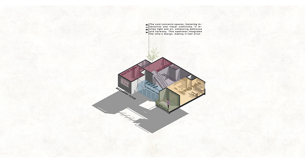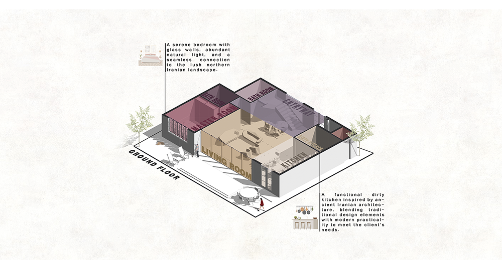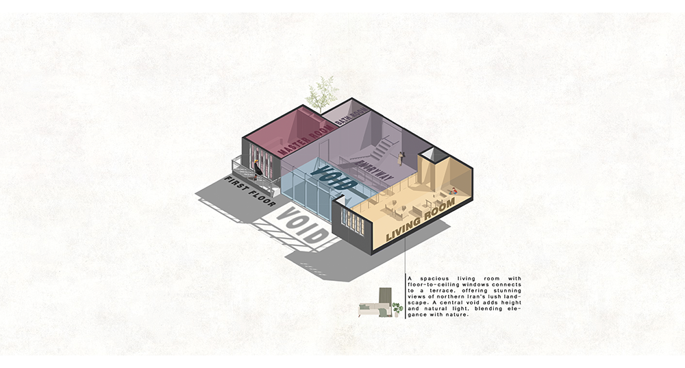 فضای داخلی و خارجی این ویلا با در نظر گرفتن تمام نیازهای خانواده طراحی شده است. فضاهای چندمنظوره داخلی به‌گونه‌ای سازماندهی شده‌اند که هم پاسخگوی فعالیت‌های روزمره باشند و هم محیطی برای استراحت و آرامش فراهم کنند. در فضای بیرونی نیز، محوطه‌ای جذاب شامل باغچه‌های زیبا، استخر خصوصی، و تراس‌هایی با چشم‌انداز خیره‌کننده طراحی شده که حس آرامش و لذت از طبیعت را دوچندان می‌کند.